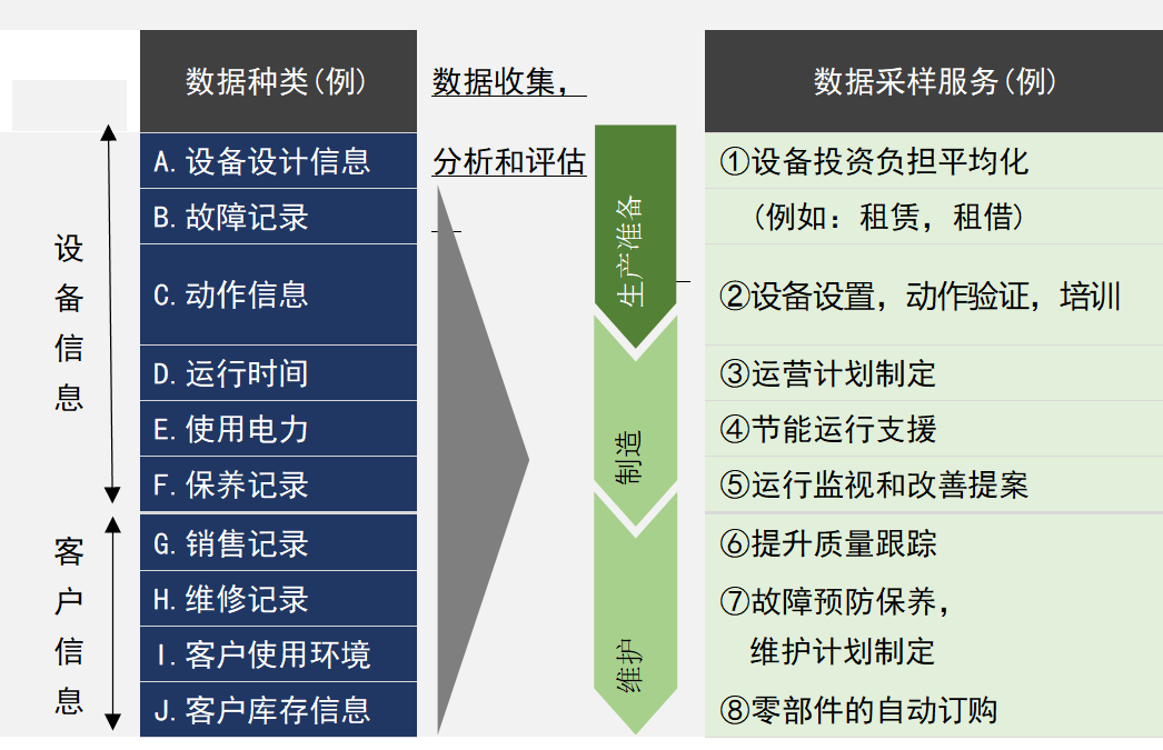 ?、诩訌?qiáng)工程建議。例如,提出工程方案,負(fù)責(zé)用戶生產(chǎn)線的設(shè)計(jì)、制作、安裝等。機(jī)床制造商加強(qiáng)與加工相關(guān)的工程建議將很重要,不僅包括他們自己的設(shè)備,還包括其他公司制造的外圍設(shè)備。此外,在提出工程提案時(shí),可以通過創(chuàng)建各種利用數(shù)據(jù)的服務(wù)來提出更高效和有效的方案。例如,在用戶企業(yè)生產(chǎn)準(zhǔn)備過程中的設(shè)備啟動(dòng)、運(yùn)行保障、培訓(xùn)服務(wù)等服務(wù),以及在制造執(zhí)行過程中的全線運(yùn)行監(jiān)控、節(jié)能運(yùn)行支持等服務(wù),預(yù)防性維護(hù),測量結(jié)果的處理控制等等。還可以設(shè)想在用戶公司的多個(gè)生產(chǎn)過程中創(chuàng)建各種服務(wù),例如在維護(hù)過程中提供反饋以支持質(zhì)量保證和改進(jìn)的服務(wù)等,并向用戶推薦出合適的服務(wù)公司(圖3)。