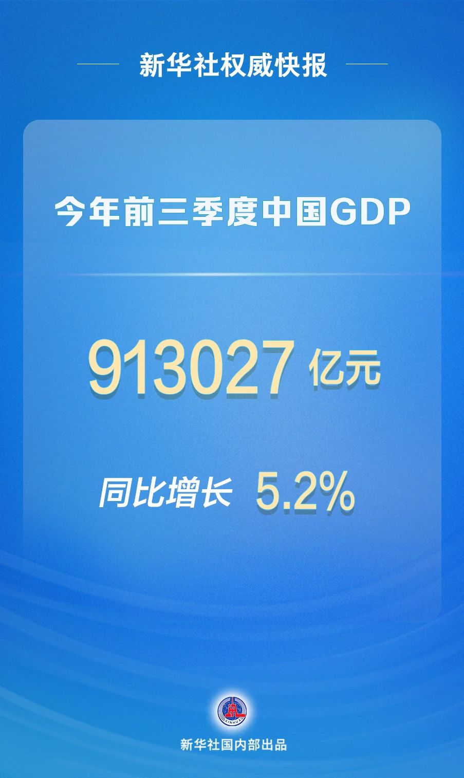 今年前三季度中國國內(nèi)生產(chǎn)總值(GDP)913027億元