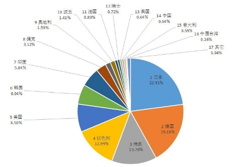 圖3 2023年1-9月經(jīng)鍍或涂層的硬質(zhì)合金制的金工機(jī)械用刀及片(82081011)進(jìn)口來源地統(tǒng)計