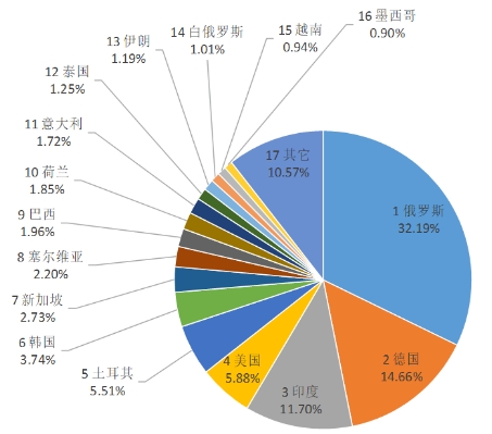 圖6 2023年1-9月其他硬質(zhì)合金制的金工機(jī)械用刀及片(82081019)出口目的地統(tǒng)計