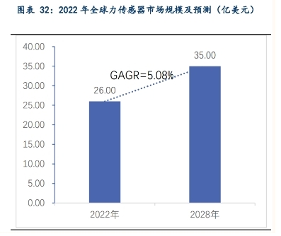 全球力傳感器市場預計將持續增長,歐美等地區仍占主要份額。2022 年全球力傳感器市場規模為 26 億美元,根據 Research and Markets 預測,2028 年全球力傳感器市場規模將達到 35 億美元,2022-2028 年間的復合年增長率預計為 5.08%;對工廠自動化和制造過程高精度的需求不斷上升是推動市場增長的關鍵因素之一。面對工業自動化以及越來越復雜精細的作業要求,傳感器的需求不斷上升,助推了全球力傳感器市場的增長;而歐美等企業對傳感器的研發起步較早,具有先發優勢,在全球市場中也占據著主要份額。