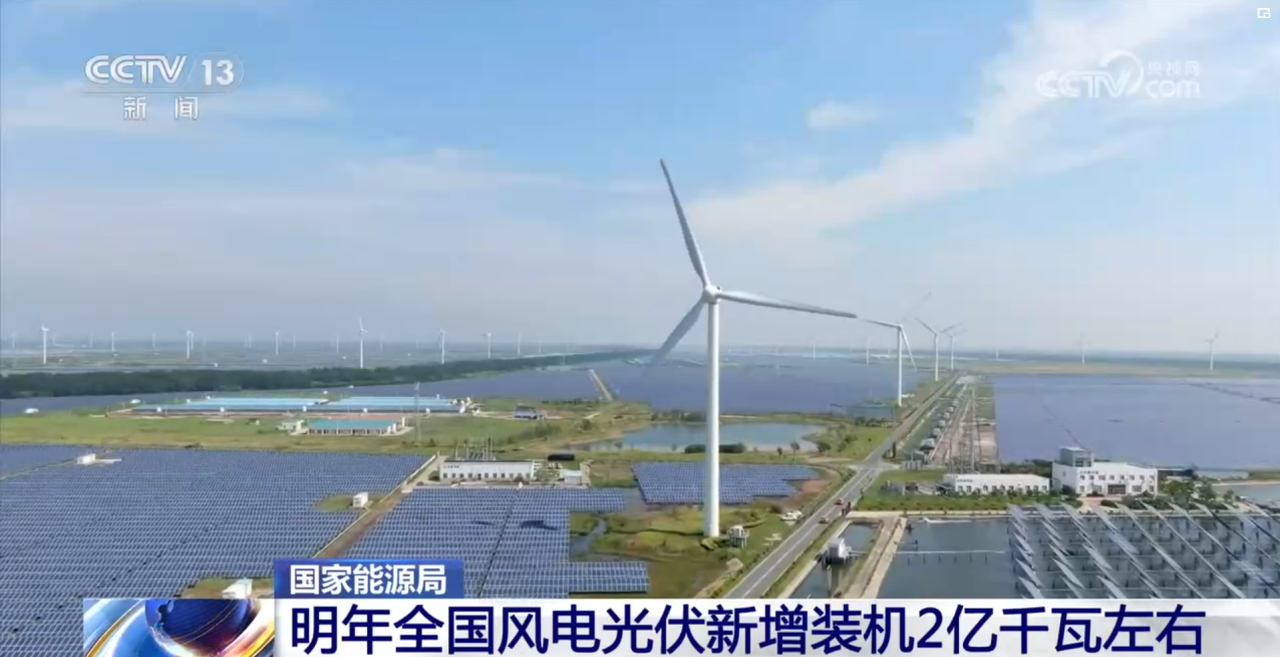 在全國能源會議的前一天,國家能源局發布1-11月份全國電力工業統計數據。截至11月底,全國累計發電裝機容量約28.5億千瓦,其中,太陽能發電裝機容量約5.6億千瓦,同比增長49.9%;風電裝機容量約4.1億千瓦,同比增長17.6%。從新增裝機容量來看,新增風電發電裝機容量為4139萬千瓦,同比增長83.79%;新增太陽能發電裝機容量為16388萬千瓦,同比增長更是高達149.4%。二者合計20527萬千瓦,即2.05億千瓦。