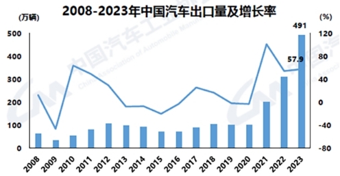 2023年,汽車出口再創新高,成為拉動汽車產銷量增長的重要力量。汽車出口491萬輛,同比增長57.9%,出口對汽車總銷量增長的貢獻率達到55.7%。分車型看,乘用車出口414萬輛,同比增長63.7%;商用車出口77萬輛,同比增長32.2%。