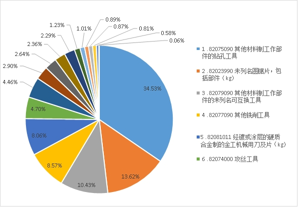 出口增長幅度較大的刀具品種有:涂層刀片同比增長39.87%,雙金屬帶鋸條同比增長19.49%,攻絲工具同比增長12.70%。