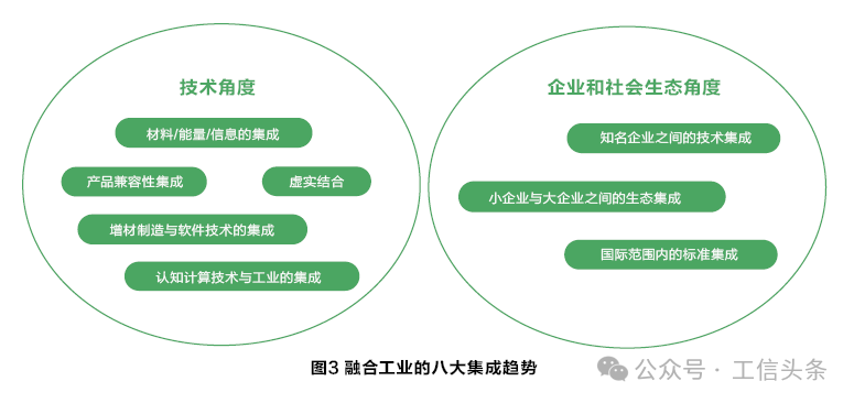 上述現(xiàn)象級(jí)事件展示了新一代信息通信技術(shù)和人工智能與人類生活密切結(jié)合的巨大潛力,新一輪工業(yè)革命就是以信息通信技術(shù)與制造業(yè)融合為標(biāo)志的。制造業(yè)與信息通信技術(shù)日益結(jié)合,表現(xiàn)出融合工業(yè)的鮮明特征,有觀察者概括出融合工業(yè)的八大集成趨勢:技術(shù)角度的五大趨勢,即產(chǎn)品兼容性集成、材料/能量/信息的集成、增材制造與軟件技術(shù)的集成、虛實(shí)結(jié)合,以及認(rèn)知計(jì)算技術(shù)與工業(yè)的集成;企業(yè)和社會(huì)生態(tài)角度的三大趨勢,即知名企業(yè)之間的技術(shù)集成、小企業(yè)與大企業(yè)之間的生態(tài)集成,以及國際范圍內(nèi)的標(biāo)準(zhǔn)集成。