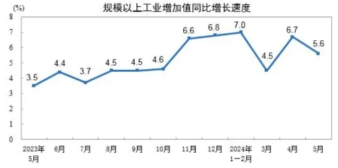 分三大門類看,5月份,采礦業增加值同比增長3.6%,制造業增長6.0%,電力、熱力、燃氣及水生產和供應業增長4.3%。