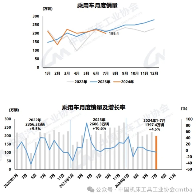 1-7月,乘用車(chē)產(chǎn)銷(xiāo)累計(jì)完成1391.7萬(wàn)輛和1397.4萬(wàn)輛,同比分別增長(zhǎng)3.9%和4.5%。
