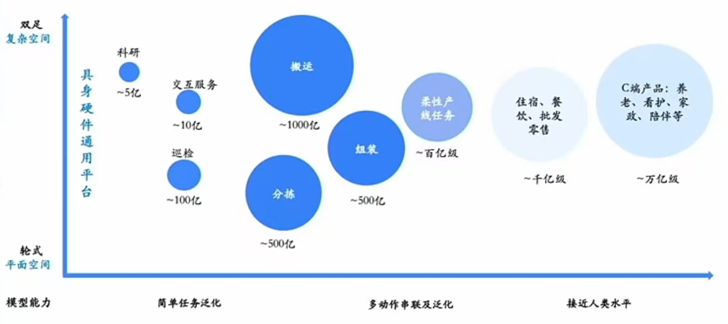 2)力爭垂直場景第一。基于不同的機器人形態,去做場景第一,倉儲極智嘉第一、工業海康第一、商用配送普渡第一,教育行業宇樹深耕第一。第一意味著做減法,聚焦飽和打法構建護城河,現在很多場景潛力還沒完全明朗,頭部不敢輕易押注,反而留下些空間。局部第一,再圖多元。