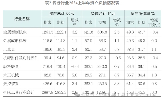 截至2024上半年,行業(yè)上市公司的資產(chǎn)總計(jì)為2887.9億元,較年初增長(zhǎng)2.0%。負(fù)債合計(jì)為1321.8億元,較年初增長(zhǎng)2.5%;其中合同負(fù)債為141.5億元,較年初下降5.5%。資產(chǎn)負(fù)債率為45.8%,較年初增長(zhǎng)0.3個(gè)百分點(diǎn),較年初增長(zhǎng)的企業(yè)占比51.7%,較年初下降的企業(yè)占比占48.3%。總體上負(fù)債增長(zhǎng)略快于資產(chǎn)增長(zhǎng),資產(chǎn)負(fù)債率微增。各分行業(yè)2024上半年的資產(chǎn)負(fù)債情況見表2。