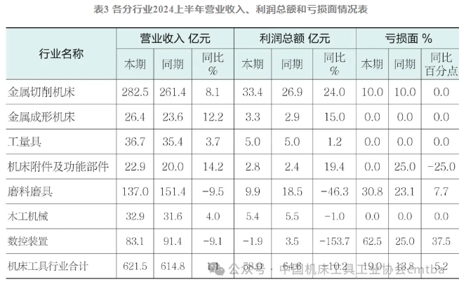 2024上半年,協(xié)會(huì)重點(diǎn)關(guān)注的機(jī)床工具行業(yè)上市公司整體營(yíng)業(yè)收入保持小幅增長(zhǎng),但利潤(rùn)總額明顯下降。究其原因,主要是受整體市場(chǎng)需求不足、金剛石線鋸和CVD培育鉆石等產(chǎn)品價(jià)格大幅下降,以及個(gè)別企業(yè)業(yè)務(wù)調(diào)整等因素影響,磨料磨具和數(shù)控裝置兩個(gè)分行業(yè)的利潤(rùn)總額大幅下降。