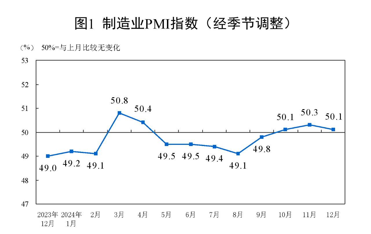 國家統計局:12月份PMI為50.1%,繼續保持擴張