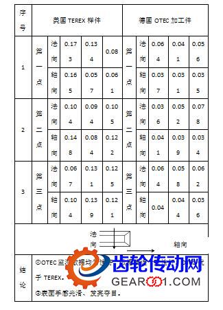 四、德國OTEC超精加工的齒輪和美國TEREX TR100原廠的一級行星輪樣件的質(zhì)量對比.