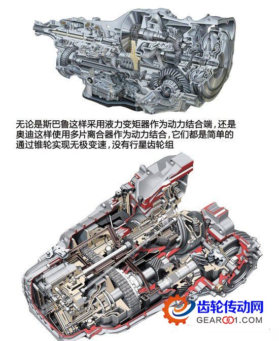 CVT等自動變速器里面也往往有行星齒輪組,不過這個時候它們往往不是作為主變速機構(鏈條/鋼帶+錐輪才是變速的主力),而是作為副變速機構使用。雖然這會增加變速器的復雜性和成本,但是也能進一步提升經濟性。